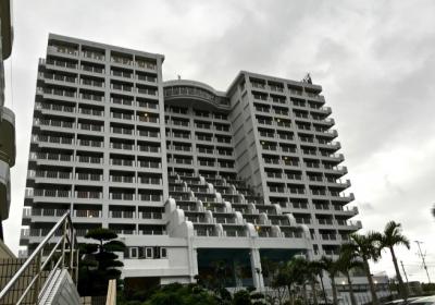 建物は少し古いですが、地下に無料駐車場はあるし(雨に濡れないで乗り降りできます)、部屋数は152室。15階建てのコンドミニアムタイプのホテルです。一番上はレストランとバンケットルーム、さらに居酒屋、1階には4月から泳げるプールがあります。