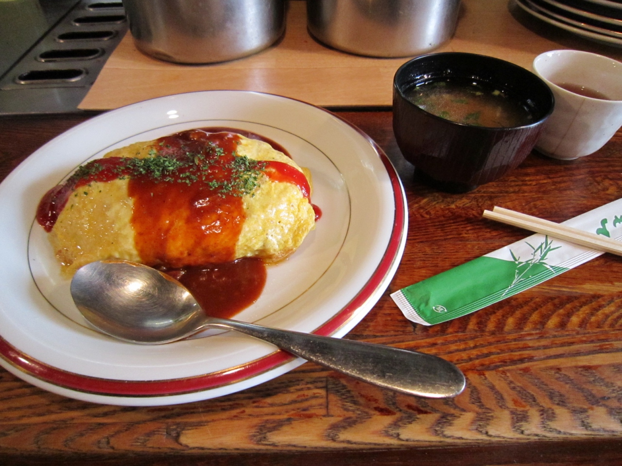 ステーキハウスの名のとおり、ランチセットメニューにはステーキをはじめ、ハンバーグ等の肉メニューが多彩のようでした。私はオムライスのセット(840円)を頼みましたが、卵はふわふわで中はチキンライスではなく、なんと、ビーフライス。しかも、豚汁ではなく、牛汁が!肉料理がメインのお店ならではなんだな~と感心しました。- 旅行時期