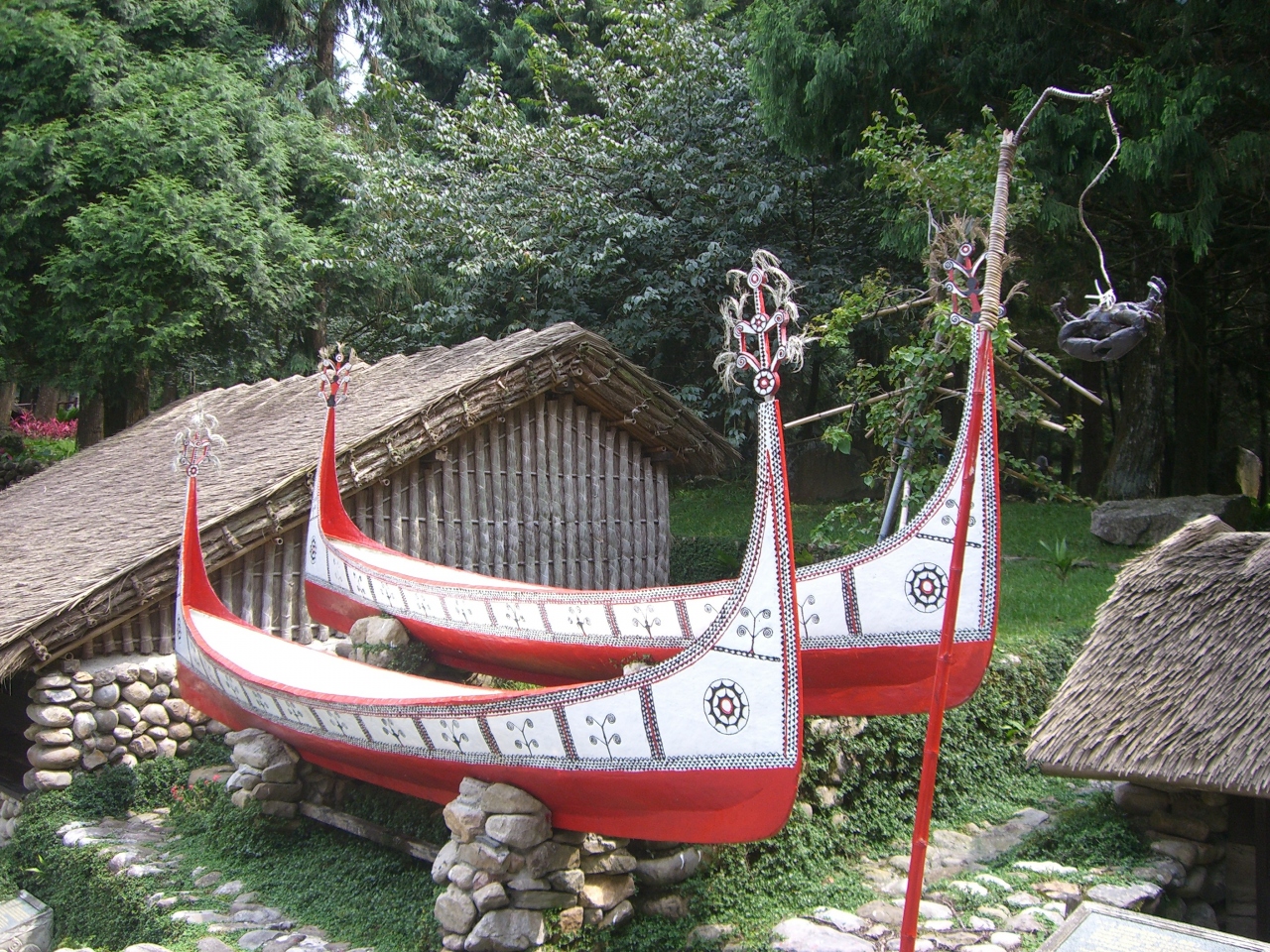 南投の日月潭のすぐ側にある、台湾でもっとも大規模な原住民理解のための施設。それが、この九族文化村です。遊園地的な乗り物もありますが、ここの主なテーマは、台湾の14原住民それぞれの伝統文化展示です。博物館などとは一味異なり、家の中に入れたり、踊りやお祭りも見ることができます。それから、何と言っても、原住民独特の装飾品や衣装なんかも販売していて、レンタル衣装もあります。