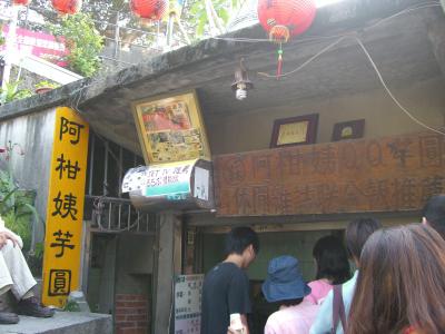 場所はあの、有名な階段の坂道を下るのではなく、上って行ったところ。この日も金曜日だったにもかかわらず、結構、並んでいました。売り場からではわかりにくいのですが、奥に進めば座って食べられます。メニューは極めてシンプル。芋圓+小豆/緑豆/花豆、総合味の暖かいものと冷たいもの。一つ確か、40元でした。確かに、評判どおり、QQな芋圓と、甘さ控えめな豆(お汁粉みたいな感じ)が、すごく美味しかったです。
