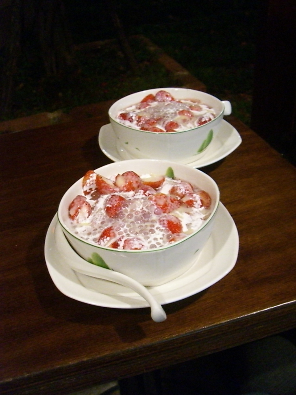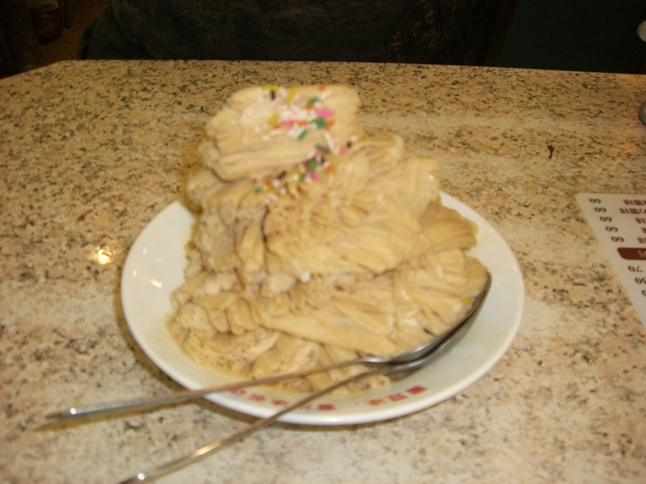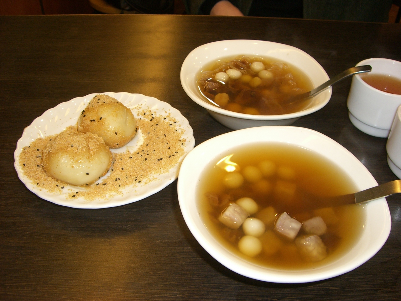 このお店の看板メニューは先にも書いたとおり、湯圓(白玉団子のようなもの)のスープ(?)。暖かいものと冷たいもの、さらにはカキ氷もあります。中身はかなり、色々あるようで、そのお団子と、紅豆とか、木耳とか、蓮の実など、本当に、いろいろ。自分の好みで設定もできるうなので、かなり色々楽しめると思います。