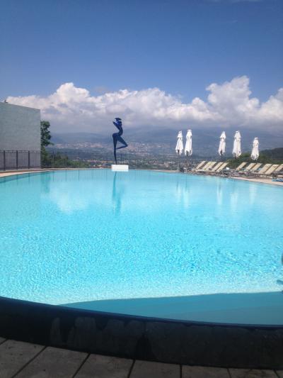 部屋も大きく 駐車場もありシーズンによりますが 大きなプールが あって 子供にも いいし テニスコートもあるらしい。(使った事無いけど) レストランもあるから ロングフライトの後 他に食べに行かなくて いいし、ワインも 食事も コスパ高いです。変に フィレンツェに高いホテル泊まって レストランたべるなら
