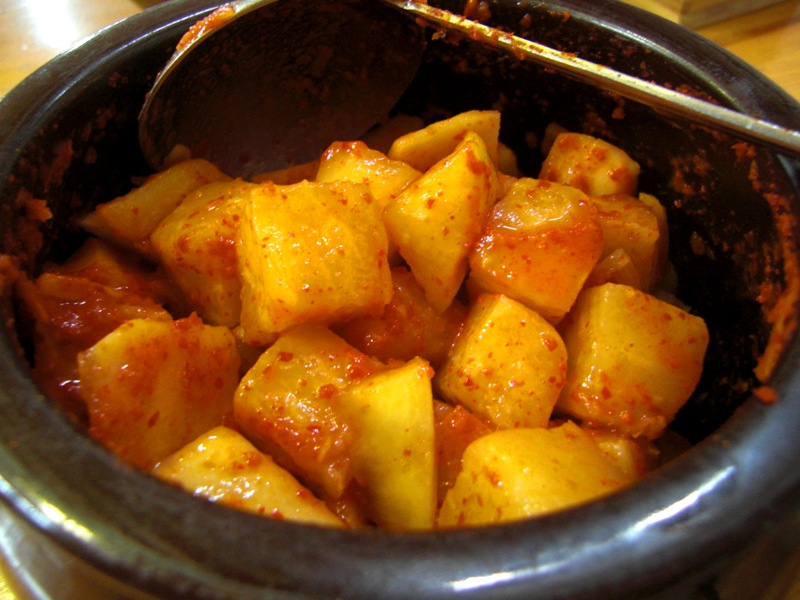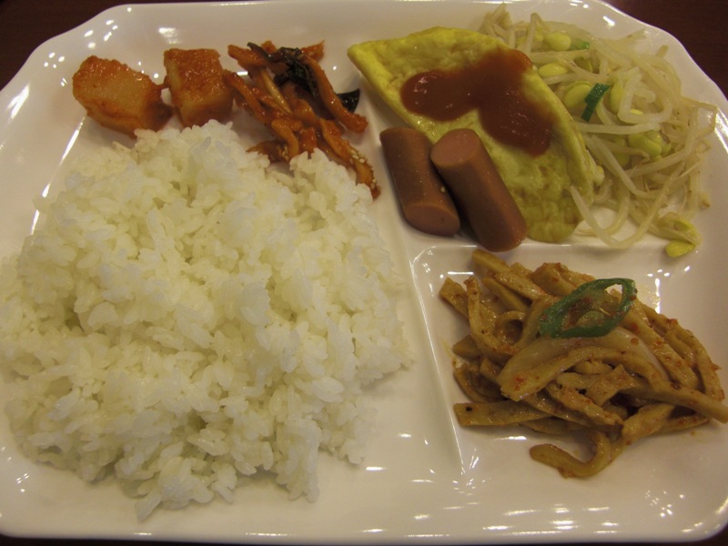 釜山でバンチャンがずら〜〜っと並ぶことに慣れていたので、カクトゥギと白菜キムチの2種類だけ(そしてセルフサービス)なのは物足らなかった。