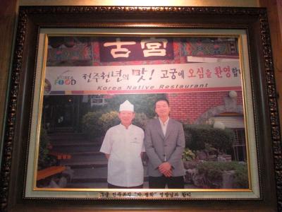店内に、このナムジャと年配の料理人らしき人が、どこかの古宮の前で写した写真が飾ってあったので、このお店はソウル明洞にあるあの古宮ですか?と訊いてみたら、そうだという返事。