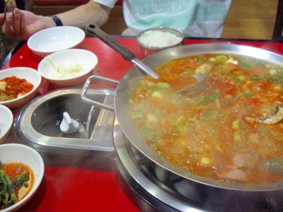 メインメニューはもちろんプデチゲ(スパムやソーセジの入った鍋)で、
