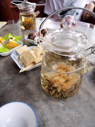 茶瓶で花の開くジャスミンティーなどをいただきました。