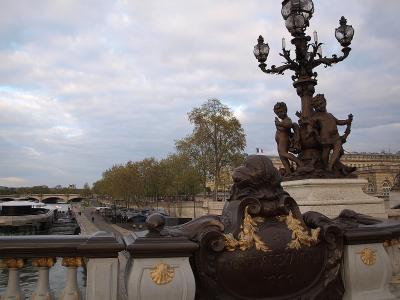 ロシア皇帝のアレクサンドル三世との友好の証としてパリに贈られた橋で、柱の上に立つ像や橋の一部は金色に輝いていて豪華絢爛でした。