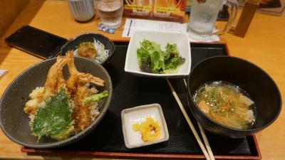 天丼定食をチョイス。だが隣の若い女子の宮崎南蛮定食のが美味しそうだった...