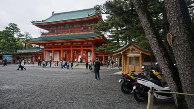 来たかった【 平安神宮 】に到着。何処に止めようか。黄色のヤマハスクー...