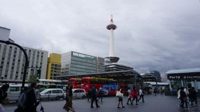 令和元年の夜は京都タワーも展望台から下が白で上が赤でライトアップ。「令...
