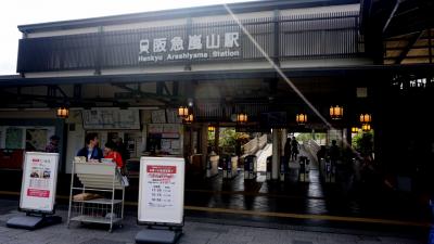 【 阪急 嵐山駅 】 一眼レフにレンズフードを装着していたが強い逆光に...