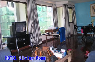 無料GradeUpで60?のジュニアスイートにしてもらいました。この部屋はリビングが全面ガラス張りなので、開放感いっぱいです。また、このホテルのPoolが屋上に有って小振りながら、十分日光浴出来ます。更に、周りが緑に囲まれているので(2F部分まで)リラックス出来ます。 ただ、朝食は期待しない様に! 値段的に付いていないよりはマシですが・・・。
