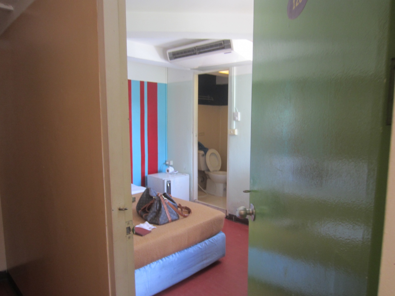 ココを選んだ理由は!ワットポーの資格を取得する為に、学校から近場?(ホテルから徒歩5分+タクシー8分)また、初カオサンなので、学校以外にも少しは楽しみたいと思い選びました。・・・実際は2階角部屋・・・深夜1時位はBarでうるさい(私的には気になりませんが)、お部屋もWですが、寝るだけ、トイレ+シャワーは有りました。