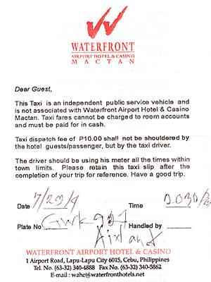 このHotelからタクシーに乗る際、スタッフがタクシーNoなど記入して渡してくれます(多分、何か有った時の為に) 僕が遊びに行った頃はタクシーは交渉性!・・・今から考えると嬉しいサービス!。。。まだ、やってると思いますよ!