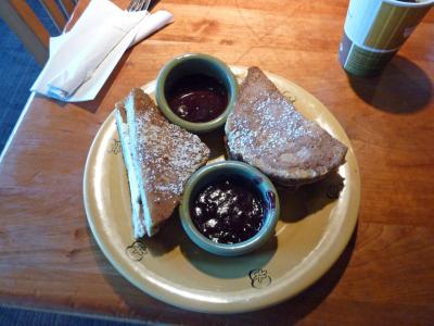 好みのパンと飲み物を注文して外のテラスで食べました。