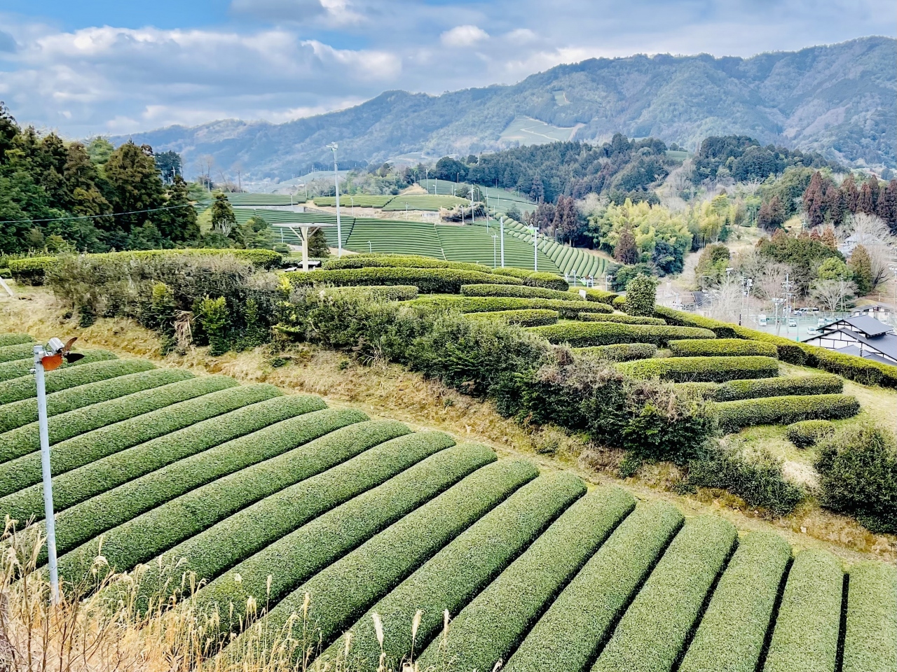 バスを降りて、地図を見ながら茶畑の中をゆっくり歩いて、のんびり歩いて、たどり着いた小さなレストラン。見渡す限りひらき広がる茶葉の畝。山全体が茶畑で覆われる異郷の景色。窓辺でそれを眺めながらゆっくり頂くランチ。あ~癒される。まさに茶原郷だ。