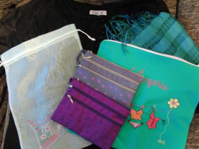 ドンコイ通りの「トンボ」にて、うっすーい巾着(約80円)、ポーチ色違い...