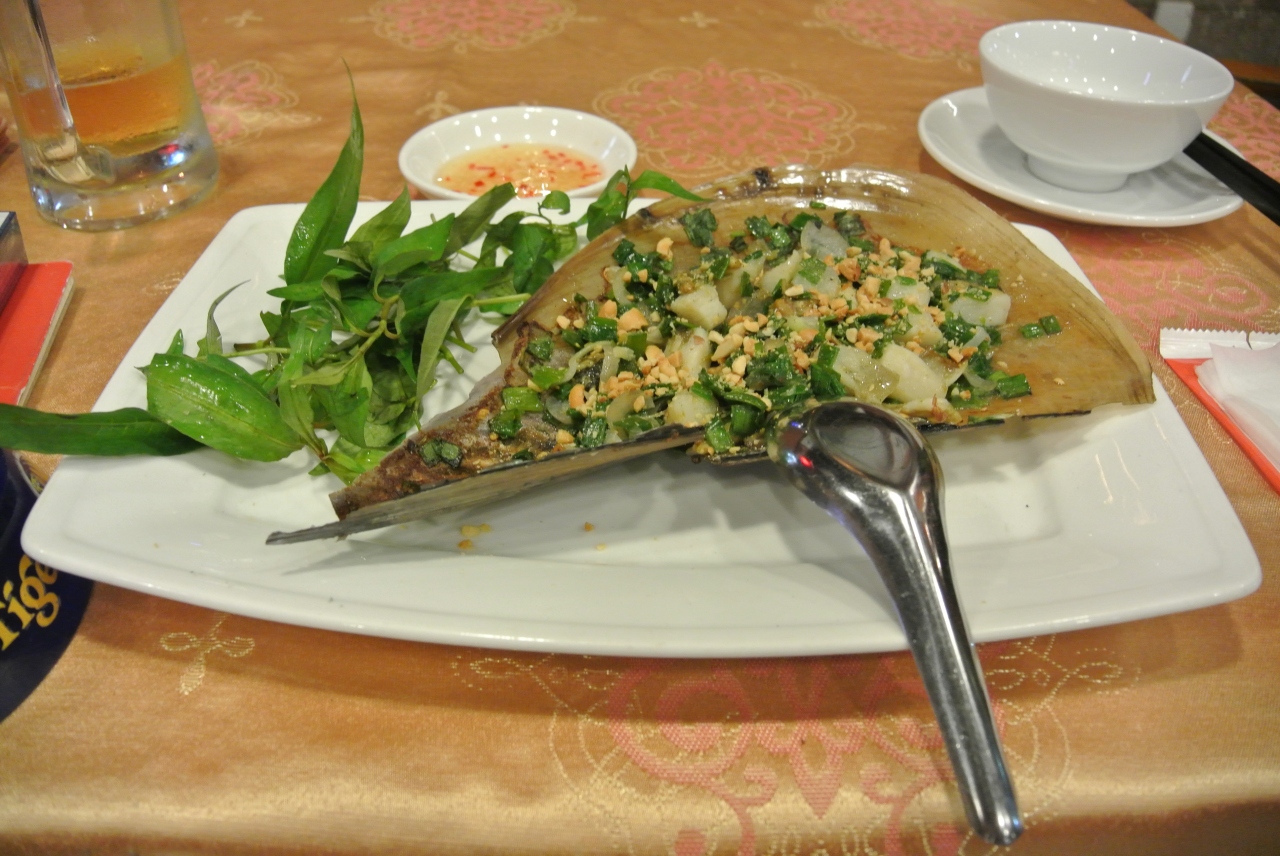 ハマグリのレモングラス蒸し、海老の揚げ春巻き、ビール、おしぼりで327,000ドン(1,600円弱)はちょっと高いですね。