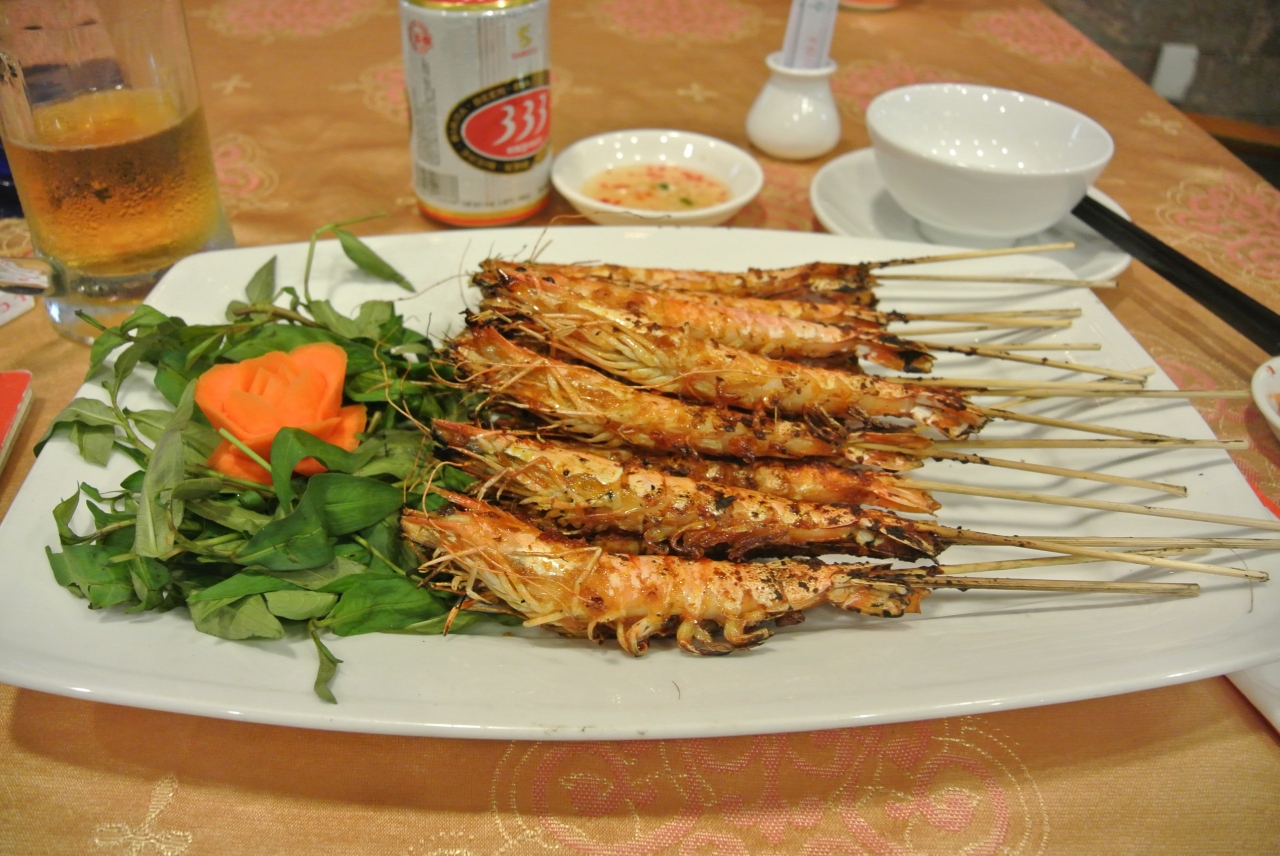 2回目は海老の塩焼き(500g)と貝料理にビール3缶で44万ドン。
