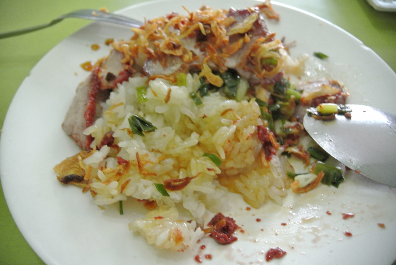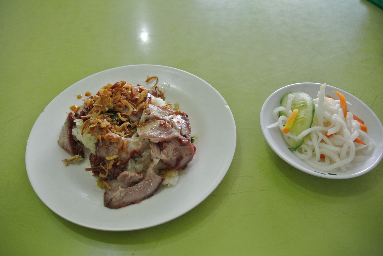 ソイ(日本でいうおこわ)は2種類ありましたので一つを選び、トッピングに焙った豚肉とフレーク状のものを乗せてもらいました。ソイはもちもちしてて美味しかった。日本人にはコム・タム(砕き米)より合うと思います。