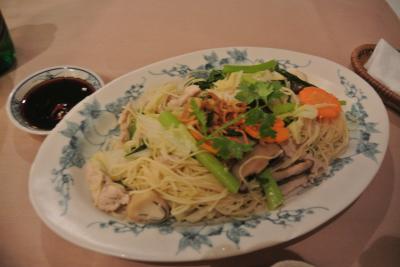 1回目に注文したのは貝料理(スカロップ)、カエルの姿焼、海鮮やきそば。