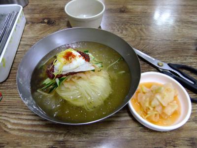 スープはさっぱり、麺はしこしこ。(冷麺よりは噛み切りやすい)。