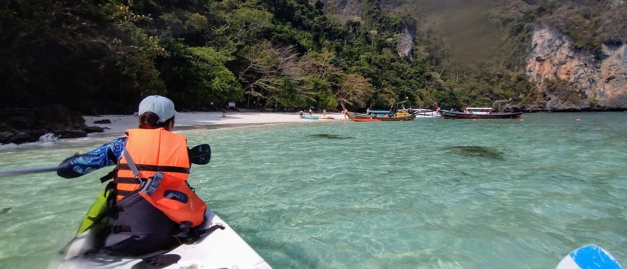 私達はピピドン島に泊まり、ロングテールボートで8時出発、4時間のプライベートツアー(2人で2400THB:2023.10)を利用しました(国立公園入島料400THB/人必要)。