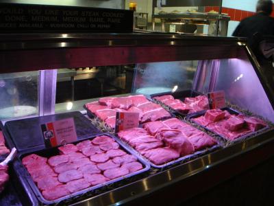 アメリカンな雰囲気の店内で、美味しい赤身のステーキをいただけます。