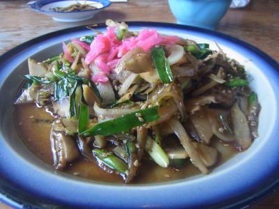 イノシシ肉はどちらかというと豚肉のような感じ。少しあぶらっこいですが