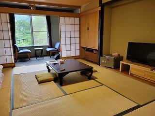 部屋:昔ながらの大型観光ホテルの和室といった感じでちょっと古さも感じるが、トイレはリニューアルされていて綺麗だった。布団は仲居さんが敷きに来てくれず、夕食後お腹いっぱいの状態(笑)で自分で敷いた。