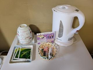 部屋に冷蔵庫が無いがフロント前に共用冷蔵庫があり、また、お茶セットも無いけど浴室前にウォーターサーバーとお茶&インスタントコーヒーの設置があり。スタッフにお願いすれば、部屋用の湯沸かしポットや冷水ポットは貰えるらしい。