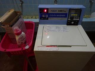 洗濯機はコイン式(1回200円)、洗剤は数種類置いてありました(無料)。