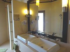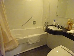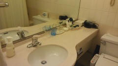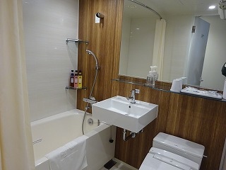 バスルーム:バスタブとシャワースペースが離れているので移動すると床がびちょびちょになる(笑)。洗面所がWシンクなのは女性には助かる♪歯ブラシ以外のアメニティは全てあり(持参しているので使ってません)