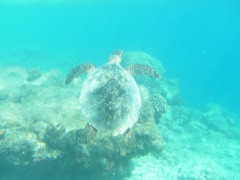 インド洋の固有種のパウダーブルーサージョンフィッシュは大きな群れで見かけたし、ウミガメ(アオウミガメとタイマイ)には毎日会えたし、ブラックチップシャーク、ネムリブカやツマグロなどのサメ類、その他いろいろ、熱帯魚の種類もサイズも豊富で毎日飽きることがなかった。