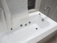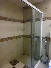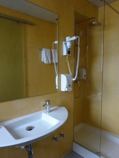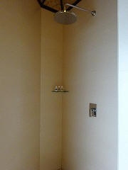 シャワースペースが狭くお湯が飛び散り洗面所の床がビチョビチョになった。