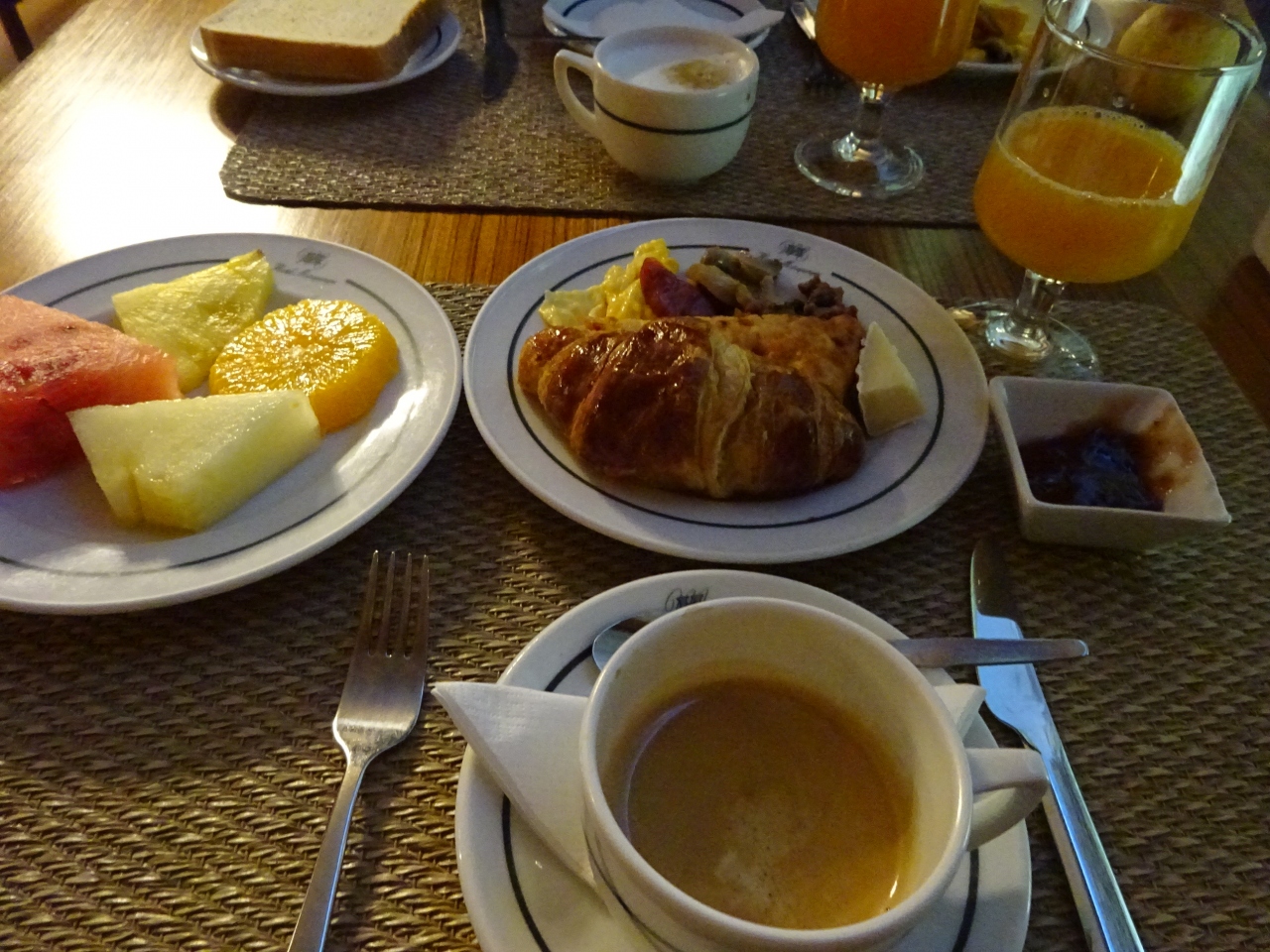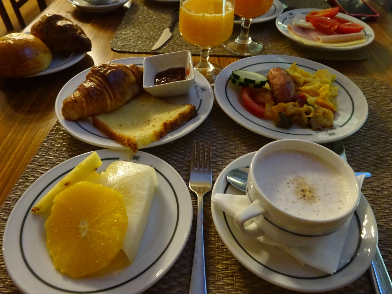ヨーロッパのホテルの朝食にはあまり期待していないが、このホテルの朝食は十分満足なレベル。パンの種類も多いし、特に生のフルーツ類が美味しかった♪