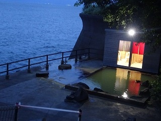 私が入っている間に何人も男性客がやってきたけど、こっちは水着なので堂々と入浴(笑)。海を見ながら開放感抜群のロケーション。