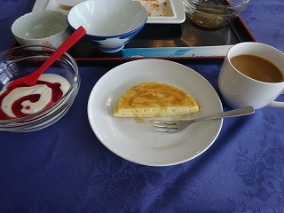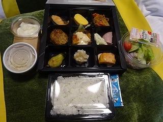 朝食は通常はビュッフェ形式らしいけど、コロナ禍の現在はお弁当。主に洋食だけど、ご飯も味噌汁も温かい物を詰めてくれる。「なるべくお部屋に持ち帰って食べて」とのことだったので、テーブルも無い狭い部屋のベッドの上でこぼさないかとヒヤヒヤしながら食べました。