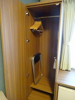 部屋はやや狭い感じがしたけど、クローゼットが大きめは便利。ナイトウェアはフロント脇で自分で持参するスタイル。