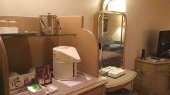 お部屋は、格安の「訳あり」で予約したので仕方ないのですが、、、従業員用のお部屋ですか?という感じ。お湯の入ったポットと加湿器は有り。冷蔵庫は無し。トイレ&洗面所無し→近くの大浴場を利用。普段は使っていない部屋らしく、エアコンが不調でず~っと「内部清掃」という文字が出ていて結局滞在中ほとんどの時間動かず、まだ寒い季節だったのでやや寒い思いをした。