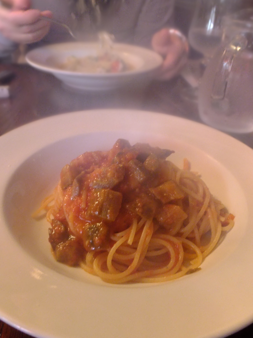 またね、パスタが湯気もうもうであっつあつなの!!もうたまらんです。