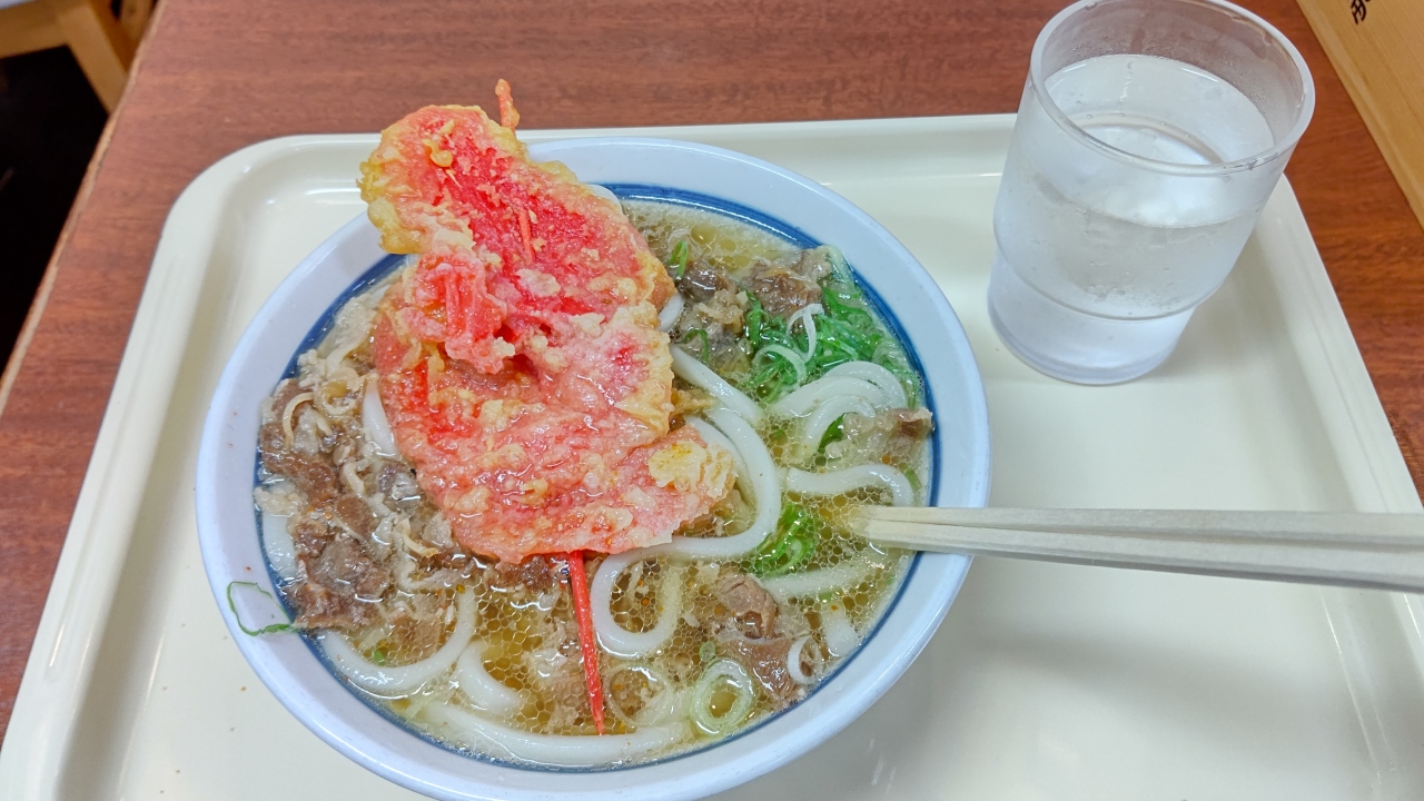 せっかく旅行に来てるのにうどんは無いよねと思って行ってなかったのですが小腹が空いたので行ってみました。肉うどんに紅しょうがの天婦羅をトッピング。福岡のうどんと少し味付けが異なりおいしかったです。紅ショウガ天も食べてみたかったので良かったです。