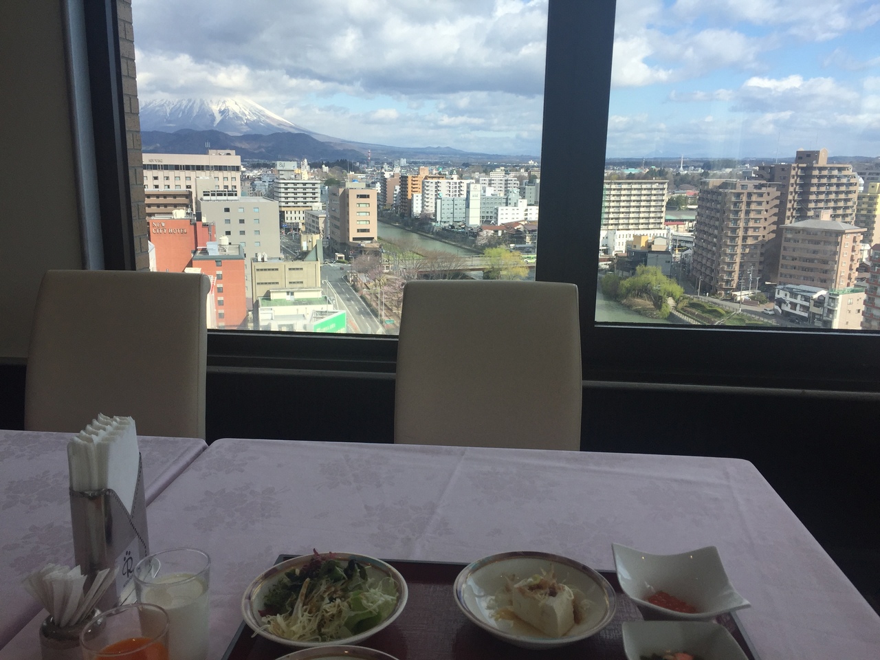 高層階のレストランで眺めが良く 雪をかぶった岩手山が美しく見えて嬉しかった。