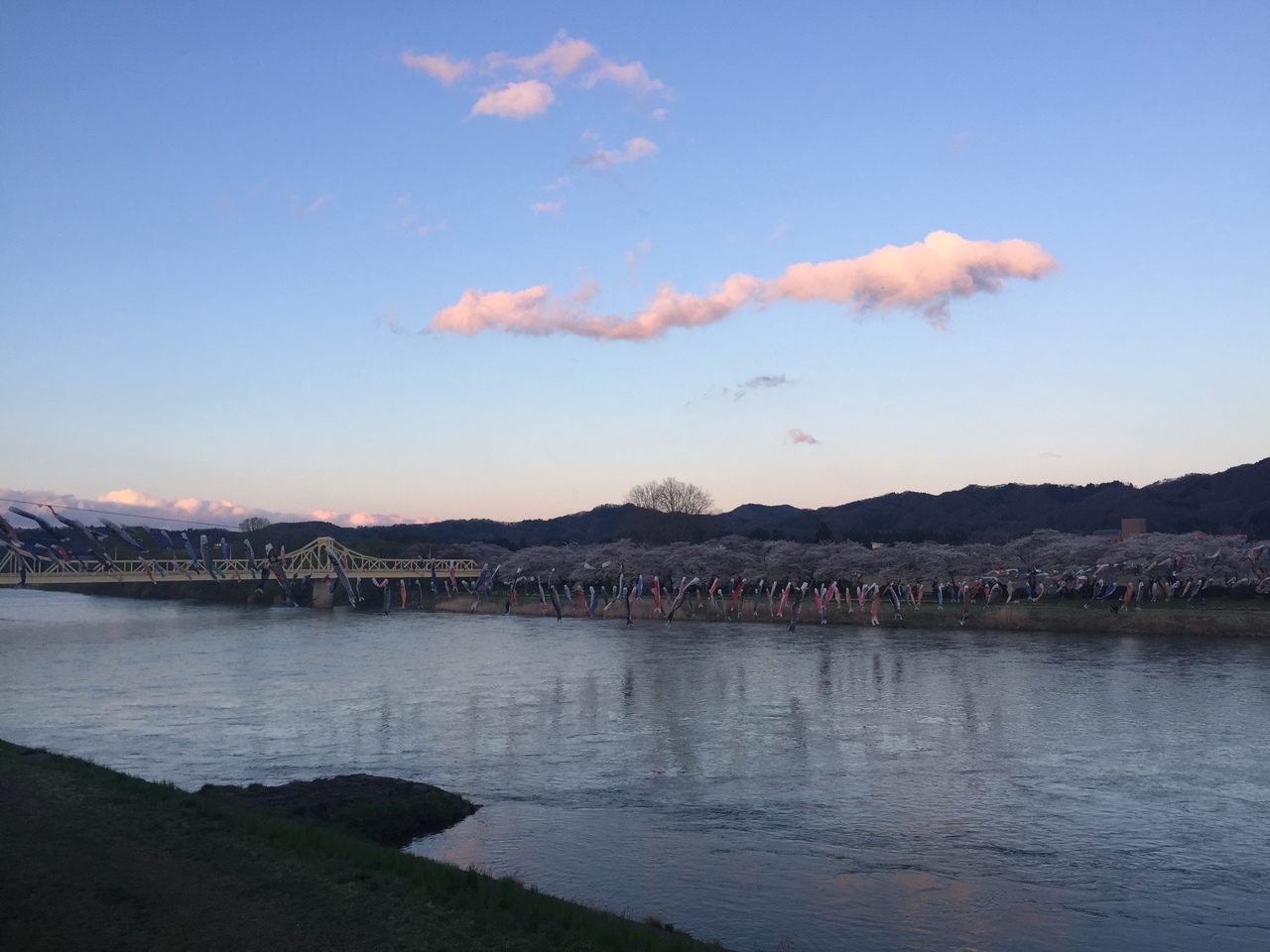 今年は桜が遅く 月見台から眺める川に はらはらと桜の花びらが流れているのが とても風情があった。