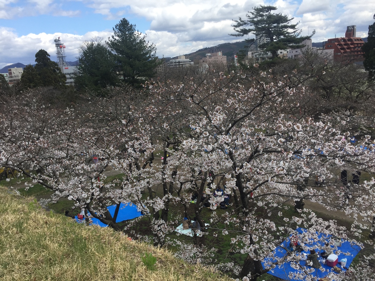 それでも 土曜日 盛岡市民達がブルーシートを敷き 花見宴会の準備をしていた。