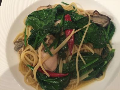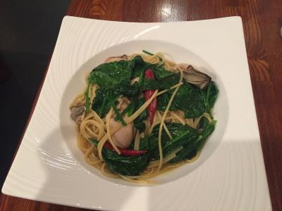 この日は限定の広島産の牡蠣とホウレンソウのパスタ。
