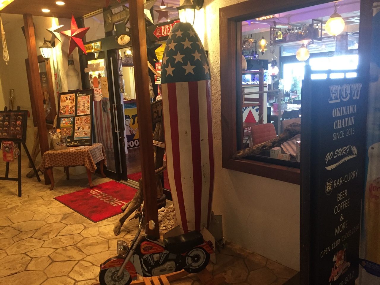 アメリカンビレッジの海に面したエリアの2階にある ハワイテイストの店。