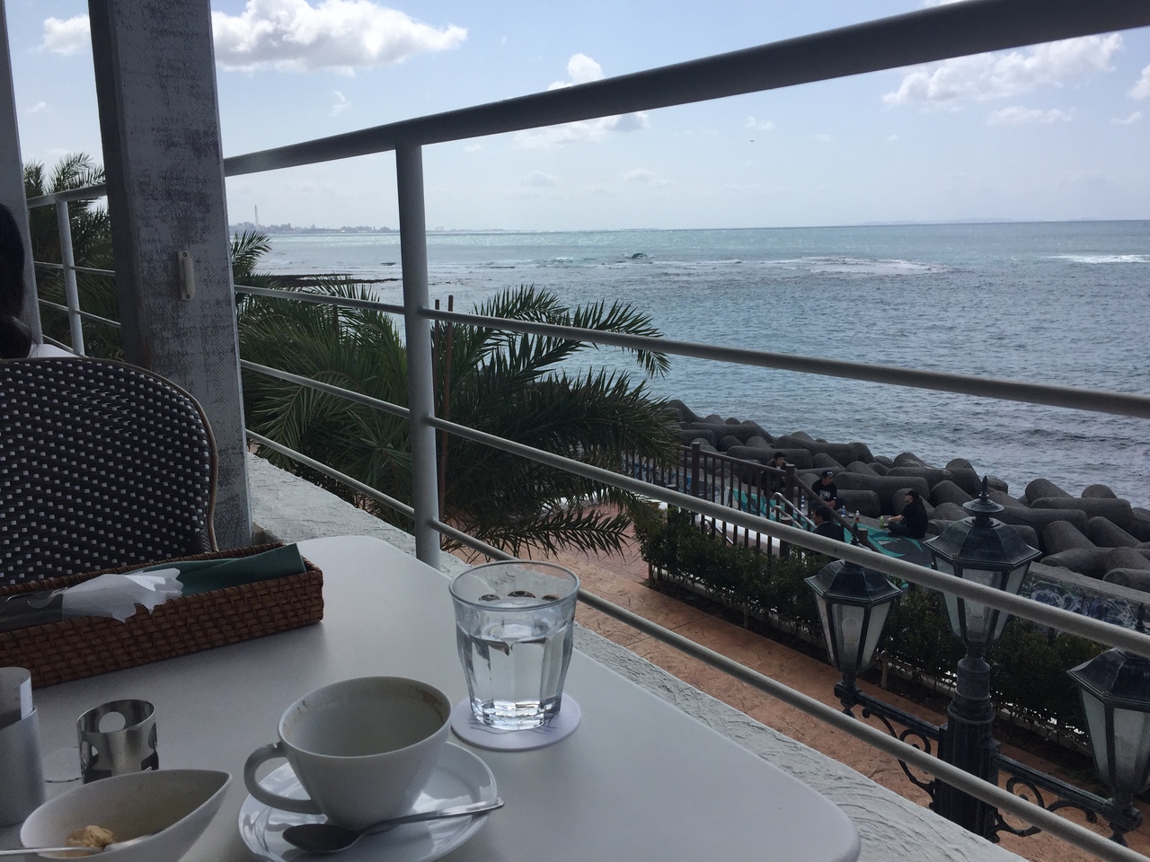 海が目の前のテラス席は青い空 青い海 確かにハワイっぽいかも。