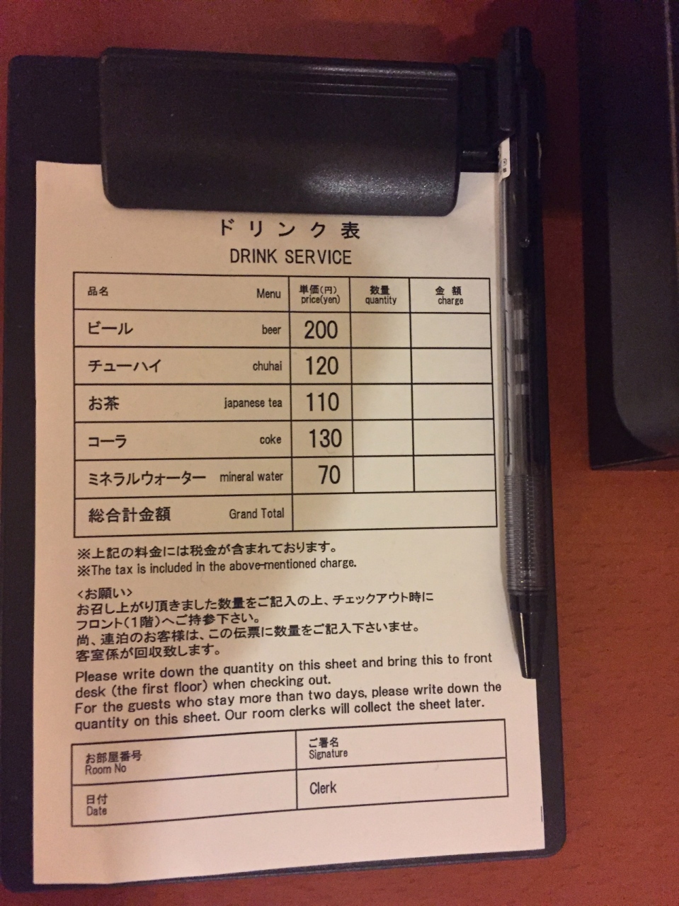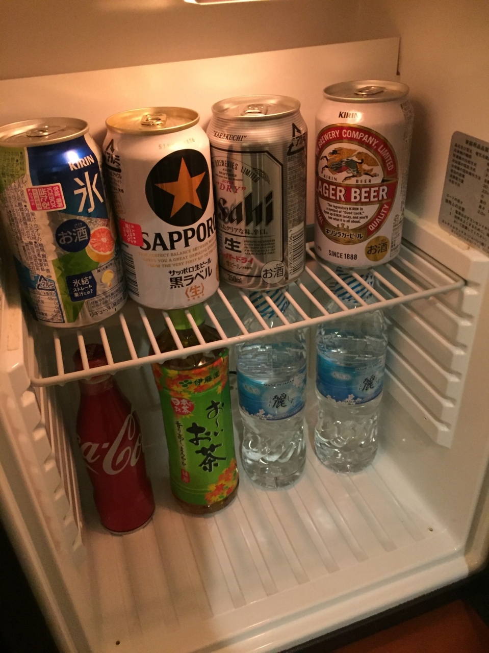 部屋の冷蔵庫のドリンクは コンビニより安く利用するのをオススメ。- 旅行時期