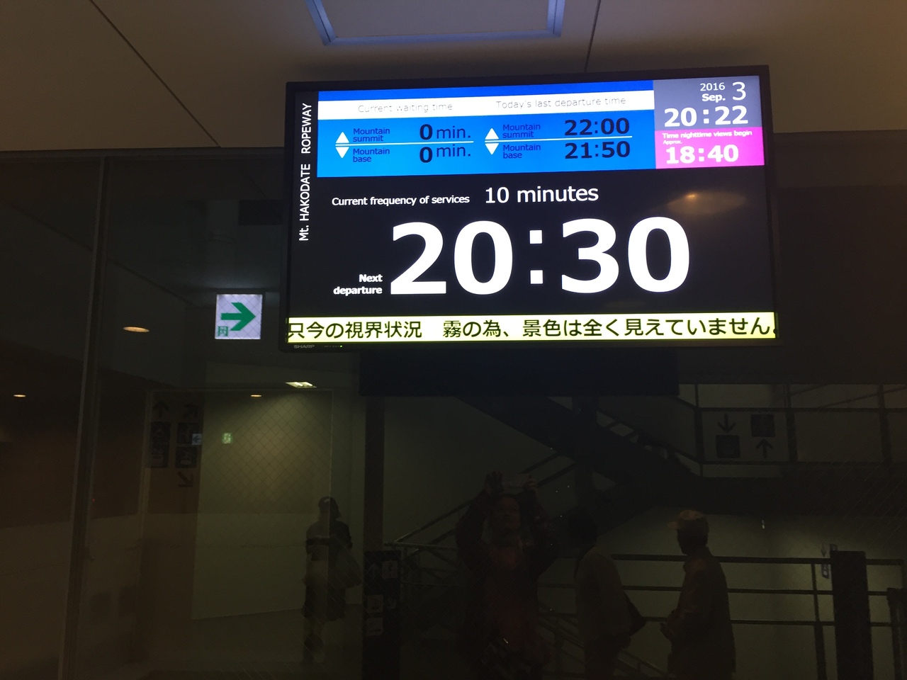 函館山の頂上には雲がかかっていて夜景が見えないのは覚悟のうえ。